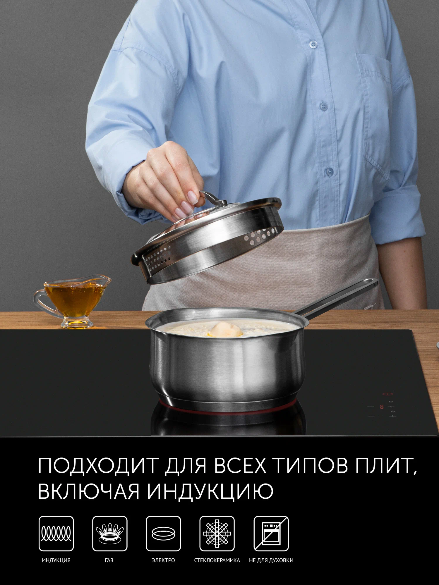многослойное дно; мерная шкала: есть; материал крышки: стекло; материал ручек: сталь