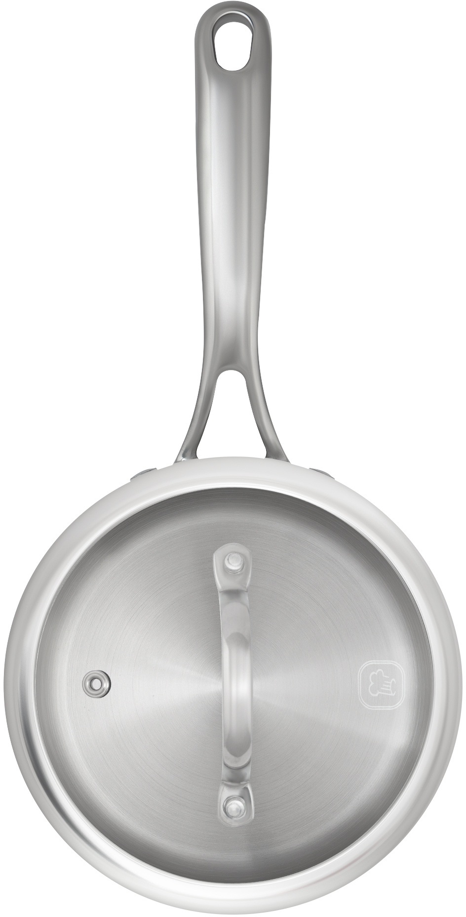 Технология: тройное вштампованное, а затем вплавленное дно без воздушных полостей. Аксессуары: литые, из нержавеющей стали. Преимущества: эргономичная форма ручек. Равномерный прогрев изделия. Округлая форма корпуса. Высокие стенки корпуса – большой литраж посуды.