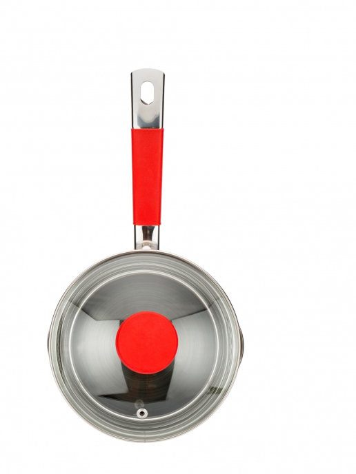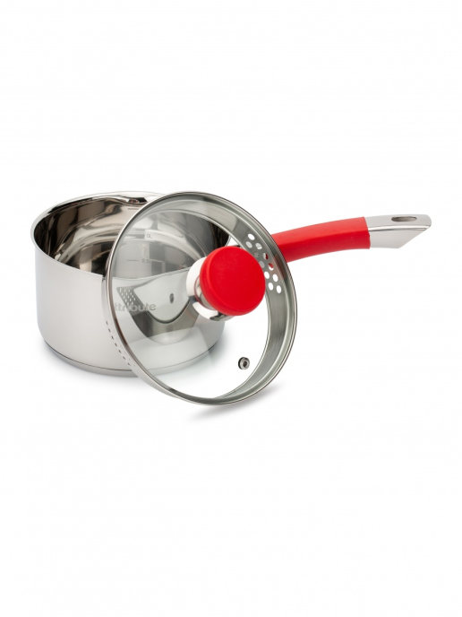 стеклянная крышка с паровыпуском, носик для слива, мерная шкала, силиконовая накладка на ручку
