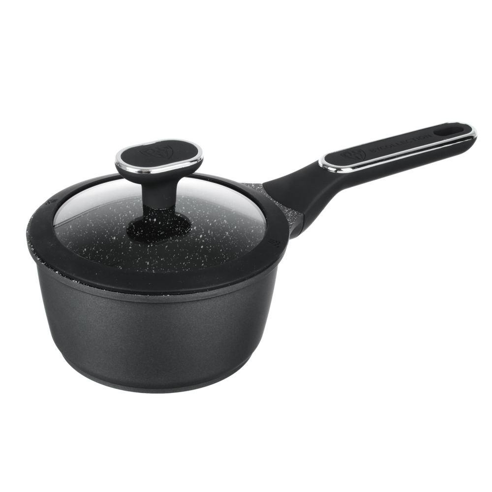 Ручка, выполненная из бакелита с силиконовым напылением, надежно удерживает посуду в руке и не нагревается во время приготовления пищи. Эксклюзивный дизайн посуды украсит любой кухонный гарнитур, современный дизайн и изящные формы ковша сделают его изюминкой, и он подойдет к любому стилевому решению.