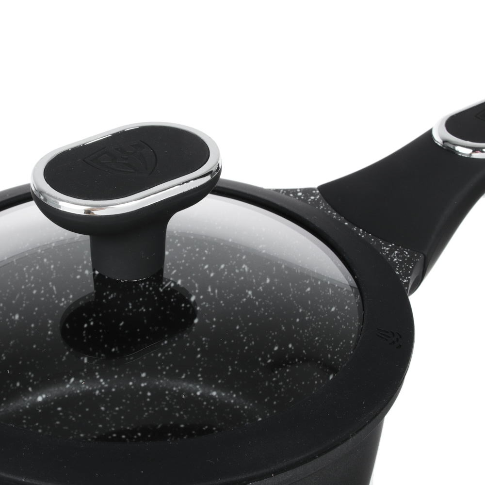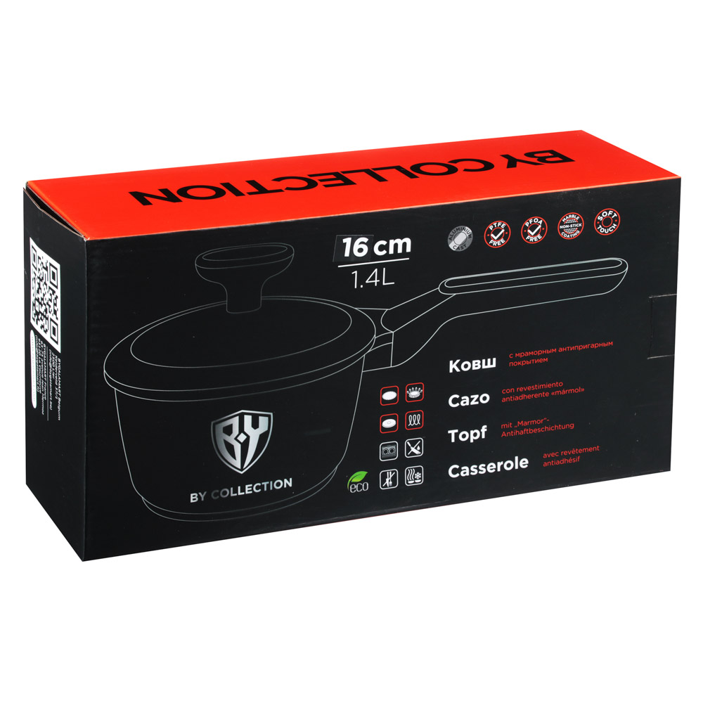 Ковш объемом 1,4 л станет вашей любимой посудой. Стойкое антипригарное покрытие под мрамор не позволяет пище пригорать, а литой алюминий обеспечивает равномерное приготовление блюд.