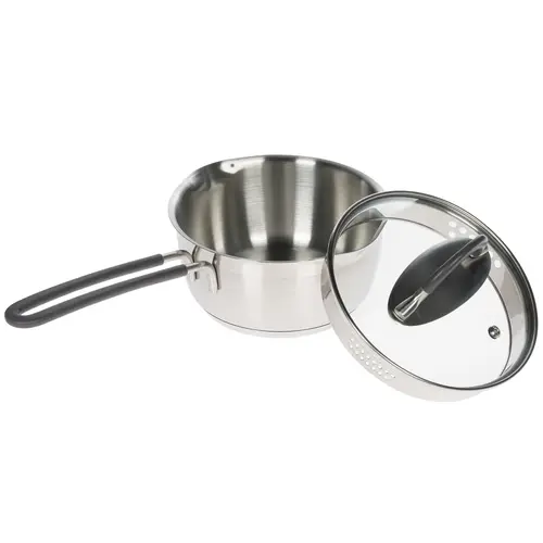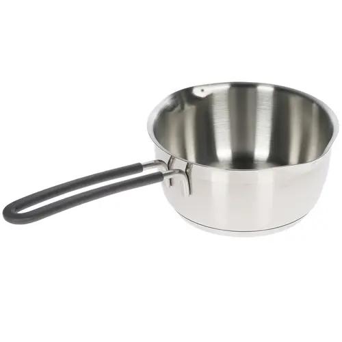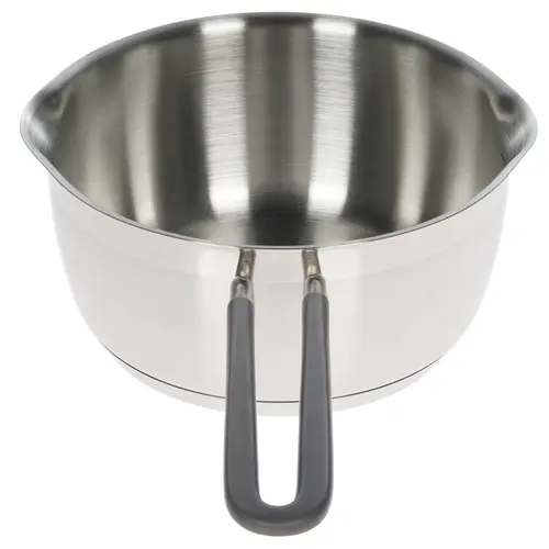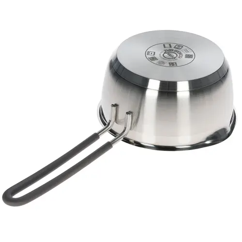 Ковш выделяется изысканным стилем и высоким уровнем надежности в эксплуатации. Особенностью посуды является 3-слойное капсулированное дно толщиной 4.5 м, которое способствует равномерному нагреву. Ручки покрыты силиконом для обеспечения удобного и безопасного удержания посуды. Специальные выемки помогают более комфортно сливать жидкость. Также отмечается наличие мерной шкалы, которая нанесена на внутренние стенки. Ковш выполненный из нержавеющей стали, будет радовать надежностью и практичностью долгие годы.