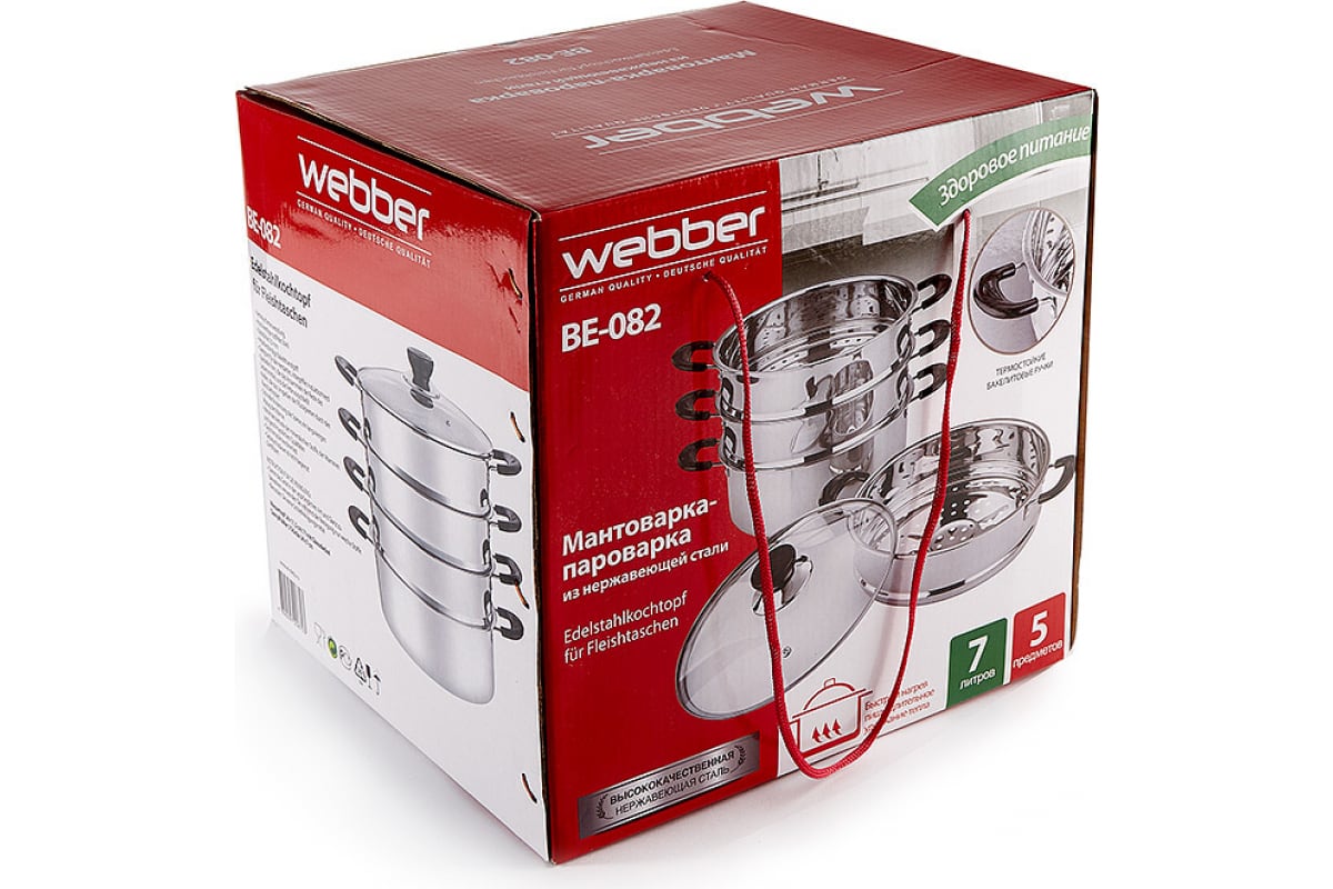 Мантоварка-пароварка Webber R BE-082 нержавеющая сталь диаметр 24 см 0R-00006755 предназначена для варки мантов и блюд традиционной восточной кухни.