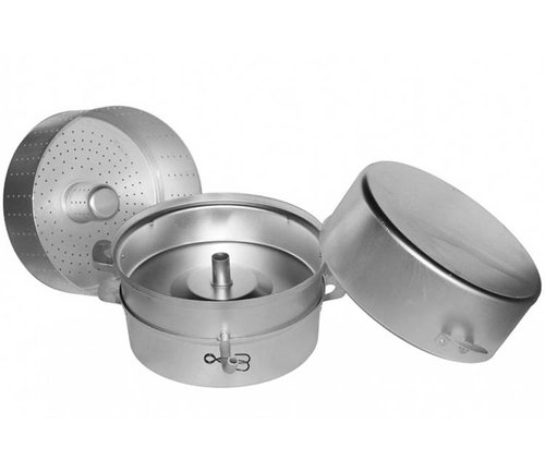 однослойное дно; материал крышки: алюминий; материал ручек: алюминий; в комплект входит поддон для воды, сокосборник, дуршлаг, резиновая отводная трубка, зажим, руководство по использованию и рецептами