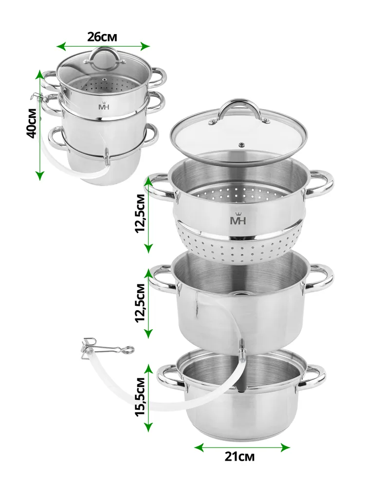 Совместимые плиты: Для газовых плит, Для индукционных плит, Для стеклокерамических плит, Для электрических плит