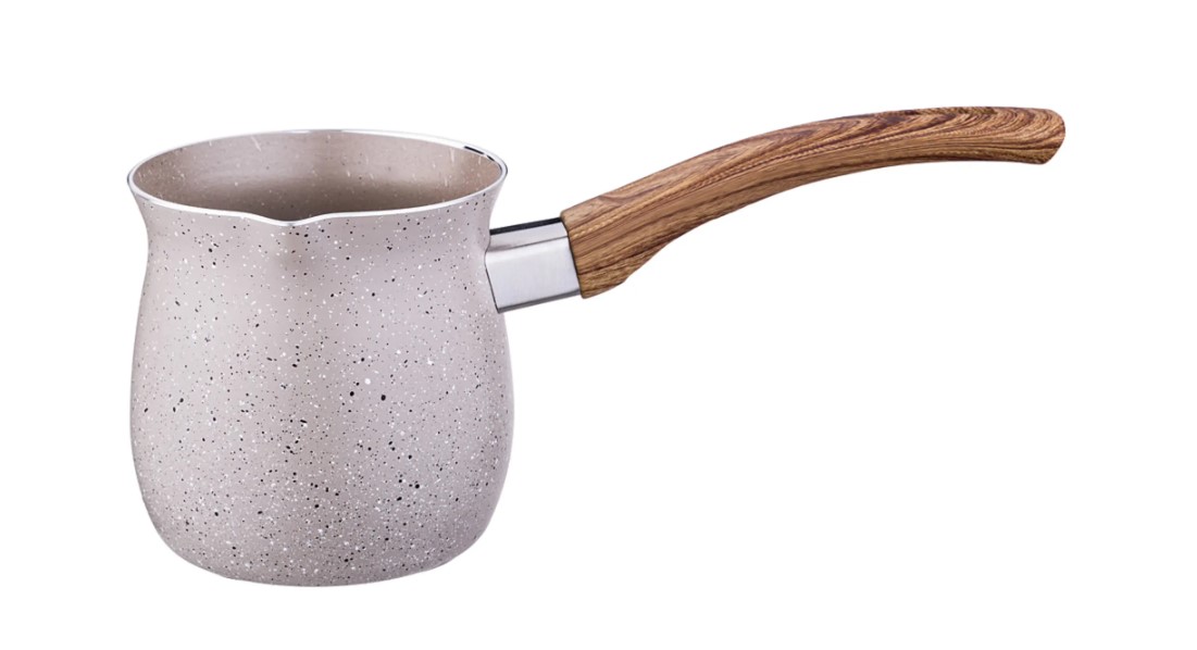 Турка ТМ "AGNESS" - ОТЛИЧНЫЙ ВЫБОР ПРИВЛЕКАТЕЛЬНЫЙ ДИЗАЙН служит украшением в интерьере Можно быстро приготовить ЛЮБИМЫЙ напиток, т.к. оптимальная ТЕПЛОПРОВОДНОСТЬ - обеспечивает равномерный нагрев. АНТИПРИГАРНОЕ "мраморное" покрытие защищает от пригорания. Ручка со специальным покрытием SOFT TOUCH очень приятна на ощупь. Ручка имеет ЭРГОНОМИЧУЮ форму, которая обеспечивает НАДЕЖНЫЙ захват и УДОБСТВО в использовании. ДОСТУПНАЯ ЦЕНА технология производства прессованного алюминия менее ресурсозатратна и дает возможность при необходимости легко заменить устаревшую продукцию на новую. ПРОСТОТА В УХОДЕ – легко мыть и хранить Подходит для всех видов плит, кроме индукционных Материал корпуса - алюминий, толщина корпуса - 1,8 мм. ТМ "AGNESS" - ГОТОВЬТЕ С УДОВОЛЬСТВИЕМ