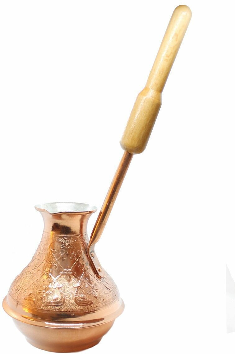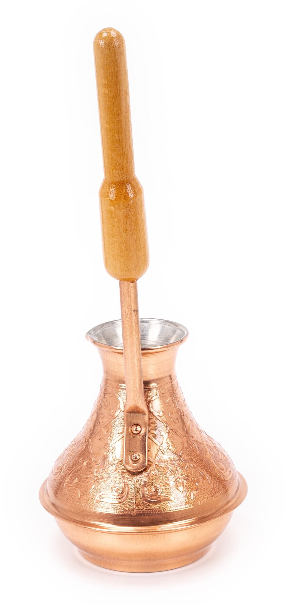 При приготовлении напитка диаметр конфорки должен соответствовать или быть чуть меньше диаметра дна турки, чтобы языки пламени не попадали на стенки корпуса посуды, а нагревали только дно. Ручка, выполненная из дерева, не нагревается, удобно ложится в ладонь при использовании турки. Ценители кофе сразу оценят классическое выполнения медной джезвы, ведь медная турка это вечная классика. Эстетику восточных традиций и легкость приготовления оценит каждый любитель бодрящего, вкусного кофе по-турецки.