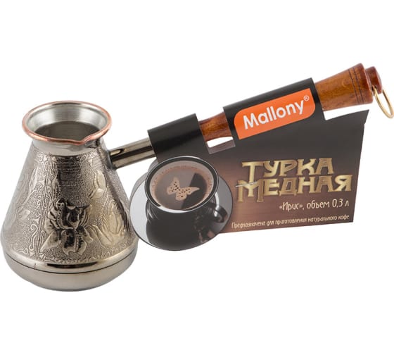 Турка Mallony Ирис медная, 0.3 л 6736 005920 обладает стандартной формой небольшого ковша. Поможет сварить настоящий ароматный кофе.