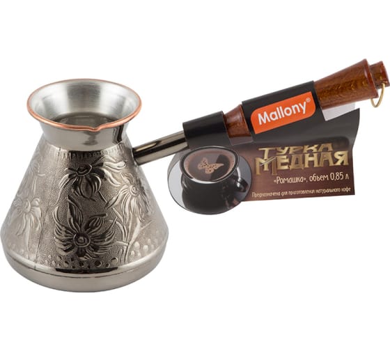 Турка Mallony Ромашка медная, 0.85 л 16767 005919 обладает стандартной формой небольшого ковша. Поможет сварить настоящий ароматный кофе.