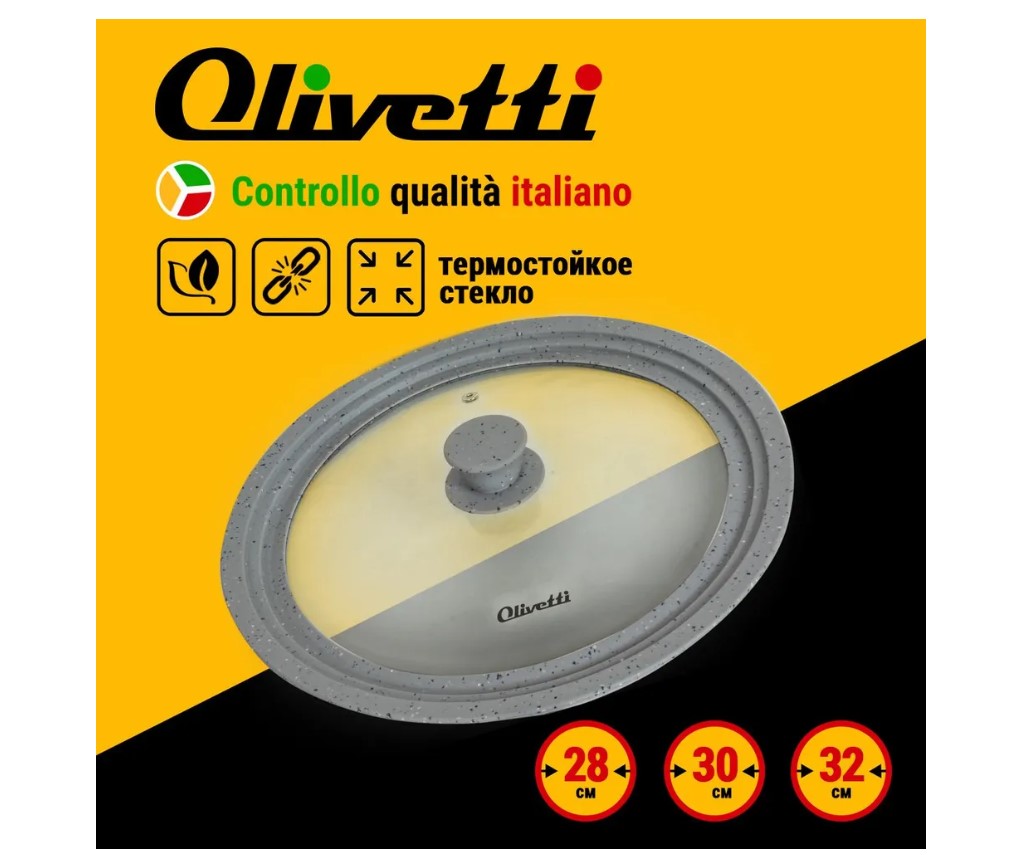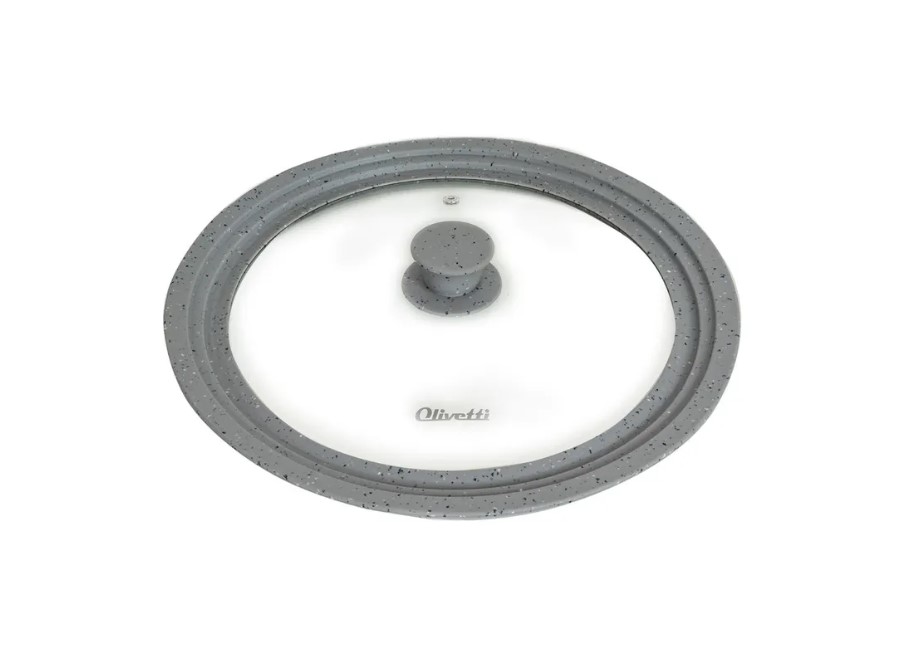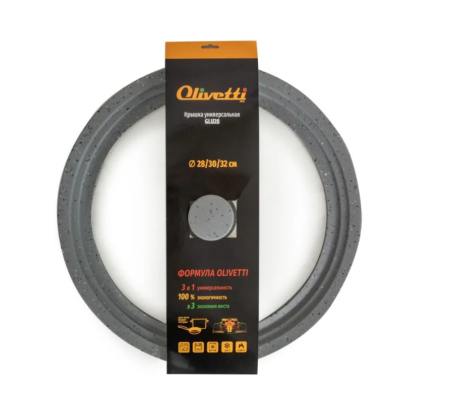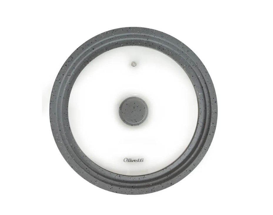 Крышка универсальная Olivetti выполнена из термостойкого стекла и экологичного силиконового кольца под три размера посуды. Подходит к любой кастрюле или сковороде диаметром 28-30-32 см. Ее можно использовать не только во время приготовления на плите, но и так же в духовых шкафах, ведь она выдержит высокие температурные режимы. Ручка не нагревается и не скользит во время приготовления, силиконовый ободок предотвращает образование царапин на посуде. Вы сможете следить за процессом приготовления без потери тепла за счет прозрачной крышки.