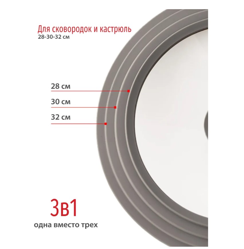 Жаропрочная крышка стеклянная для сковороды и кастрюли 3 в 1 сочетает в себе универсальность, 100% экологичность, повышенную прочность и экономию места.
