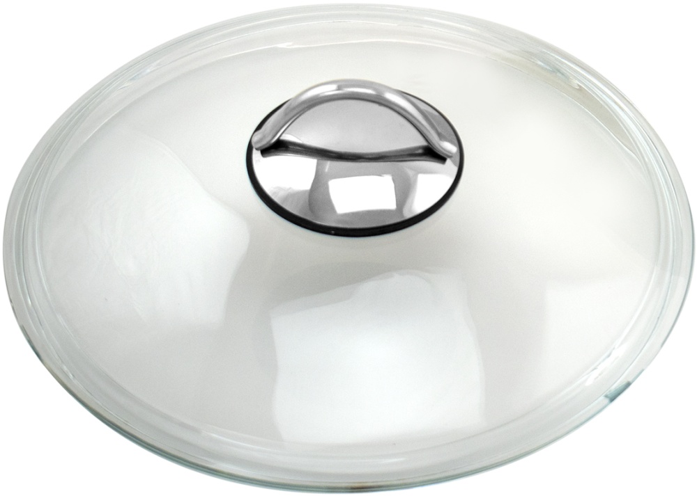 из жаропрочного стекла, безободковая крышка, цвет ручки: серебнянный, диаметр = 30 см