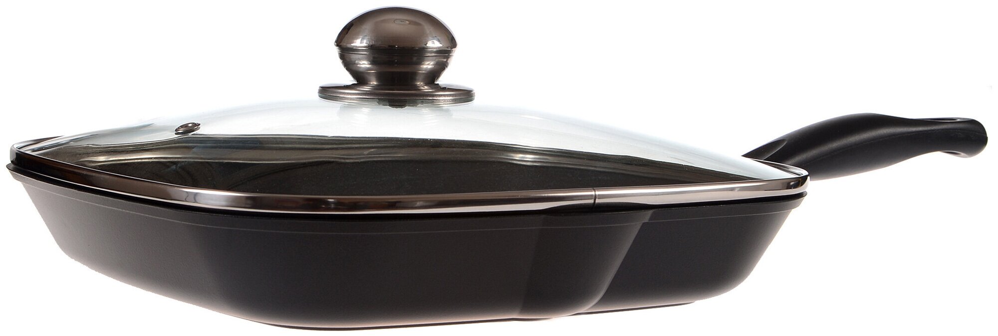 Крышка квадратной формы предназначена для сковороды-гриля или для квадратных сковород.