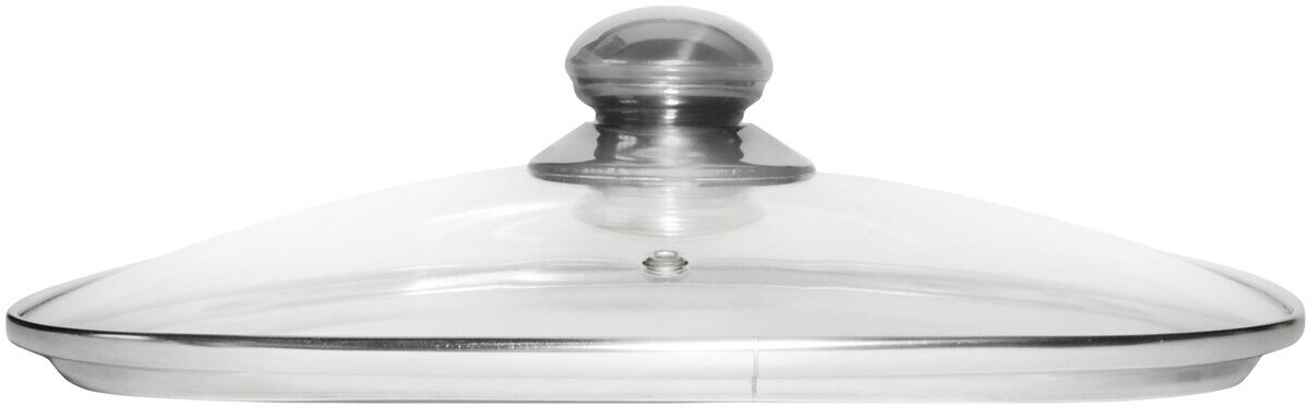 Крышка изготовлена из жаропрочного стекла и снабжена устойчивой к износу хромированной ручкой, которую удобно и приятно держать в руке. Для правильной циркуляции воздуха на ней есть паровыпускное отверстие.