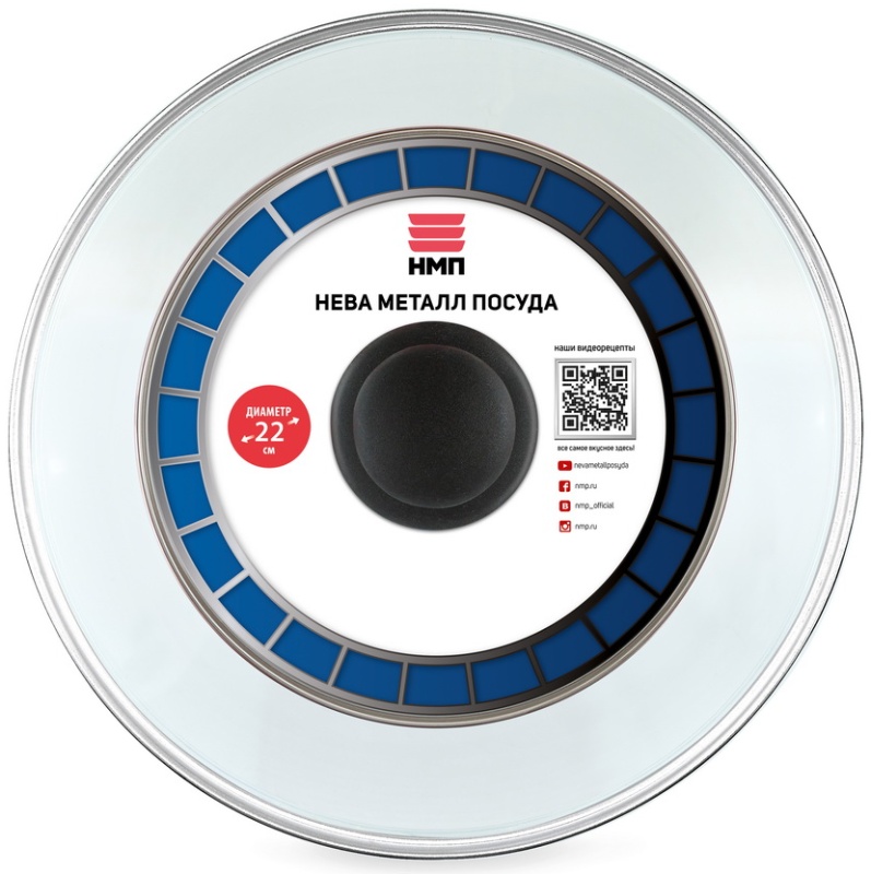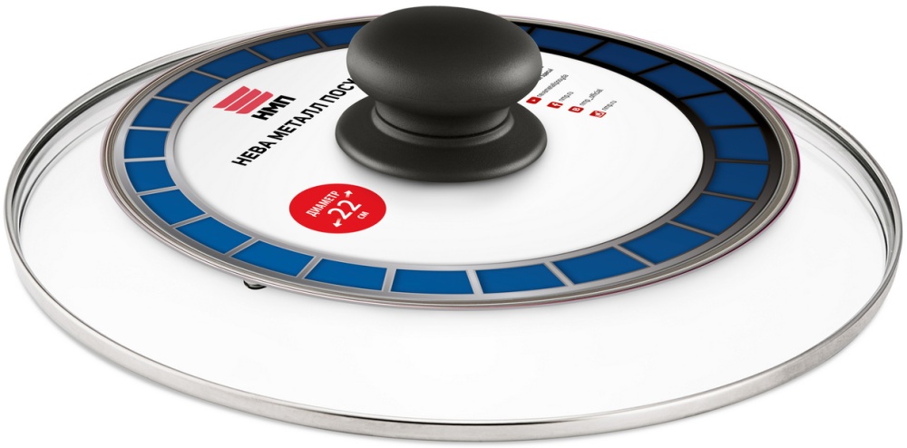 Крышка стеклянная НЕВА МЕТАЛЛ ПОСУДА с металлическим ободом, 22 см 43022