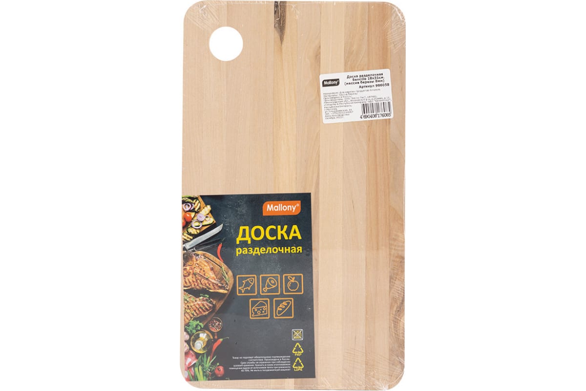 Разделочная доска Mallony Sencillo 18x31 см массив берёзы 8 мм 986058 предназначена для использования на кухне.