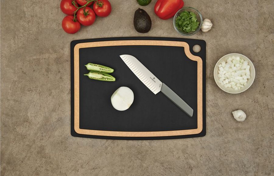 Эта разделочная доска, изготовленная из бумажного композитного материала, элегантна и тонка, но при этом очень прочна. Благодаря удобной для лезвия поверхности и термостойкости до 175 ° C / 350 ° F он будет использоваться от измельчения во время приготовления еды до подачи во время ужина.