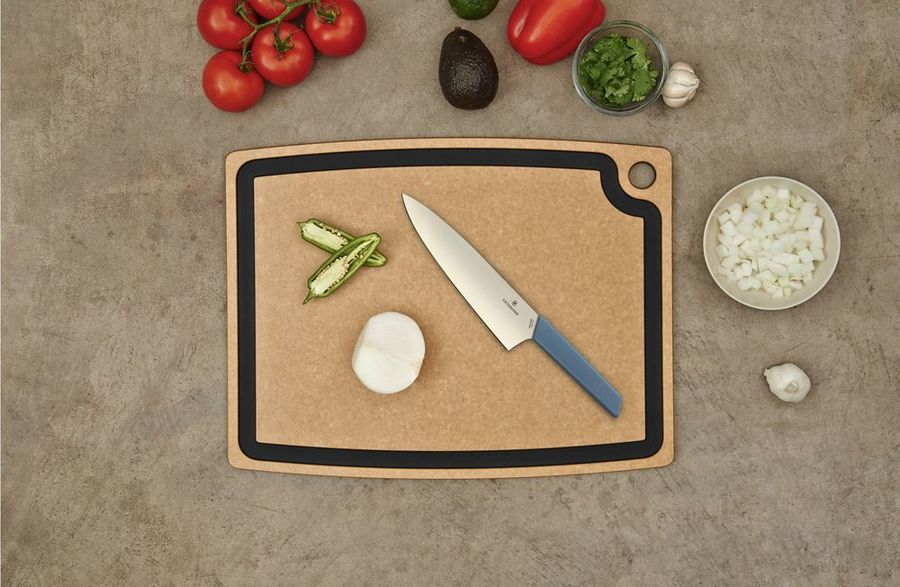 Эта разделочная доска, изготовленная из бумажного композитного материала, элегантна и тонка, но при этом очень прочна. Благодаря удобной для лезвия поверхности и термостойкости до 175 ° C / 350 ° F он будет использоваться от измельчения во время приготовления еды до подачи во время ужина.