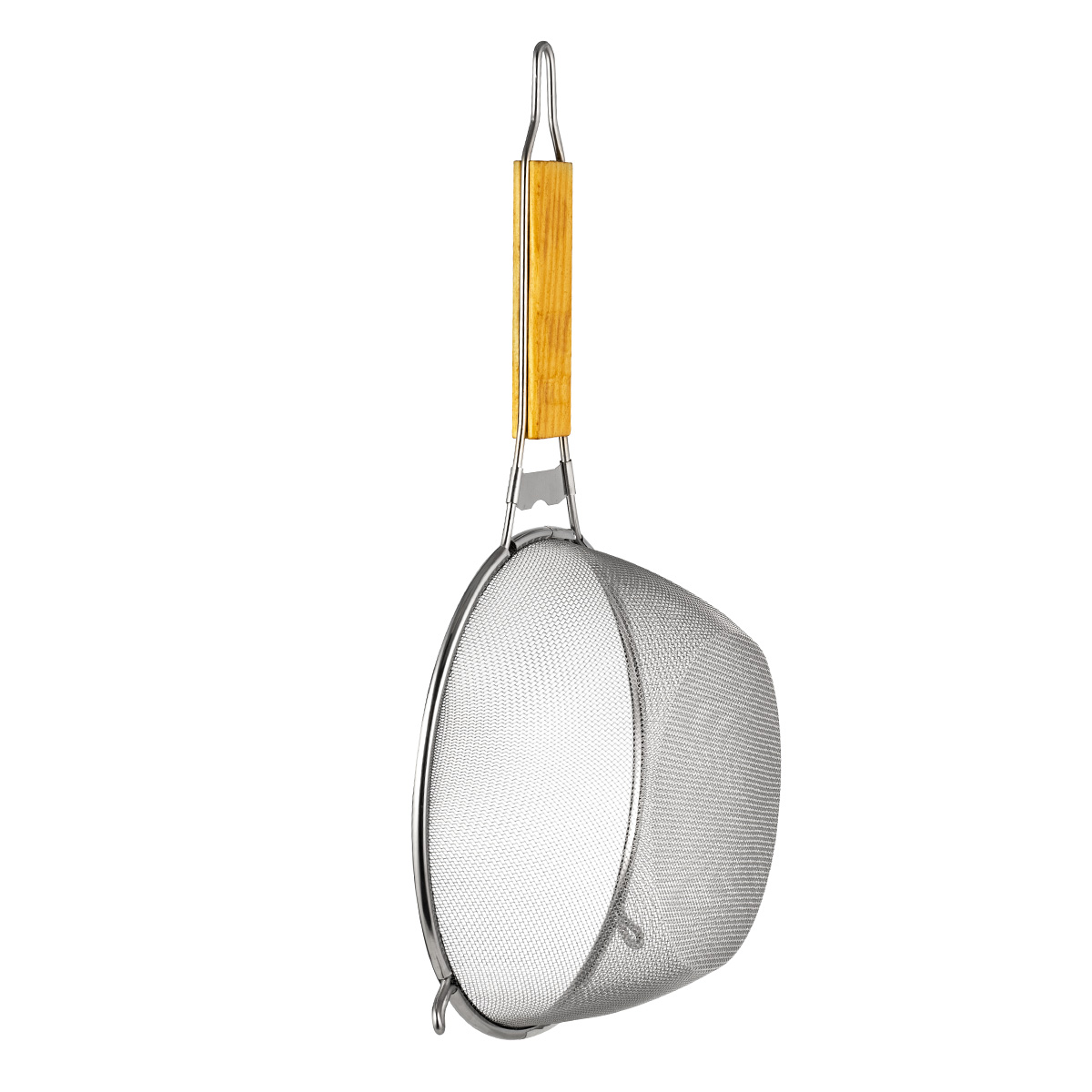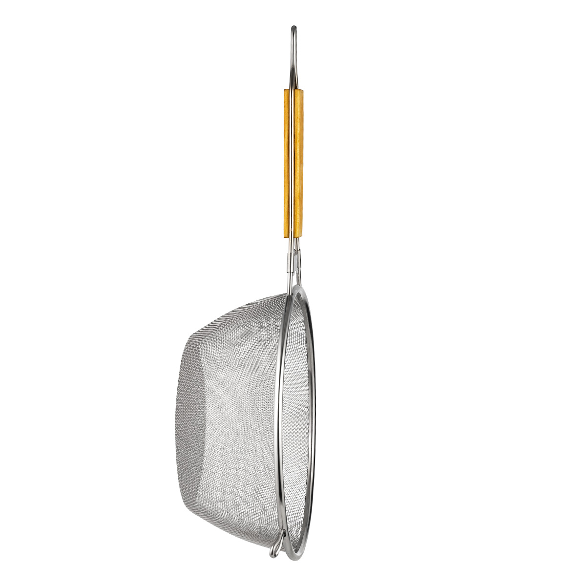Удобный в использовании дуршлаг LARA LR03-50 идеально подойдет для мытья ягод, процеживания бульона и сливания жидкости с отварных продуктов. Деревянная вставка защищает ручку от поломок и придает ей жесткость. Два ушка и удлиненный крючок служат опорами, если вы хотите поставить дуршлаг сверху кастрюли или миски. Сталь с высоким содержанием хрома не ржавеет. Диаметр изделия: 21,5 см.