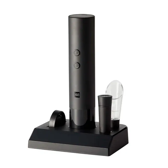 Электрический штопор для вина – это главный элемент данного сета. Простейший способ, как открыть бутылку вина, не прикладывая физических усилий – применить электрический штопор HU0235. Этот автоматический выделяет среди остальных удобный корпус, который сделан из матового пластика, препятствующего выскальзыванию из рук, удобство управления и долгая работа от 4 батарей, что позволяет применить электрический штопор Huo Hou Electric wine Bottle Opener для 60 бутылок вина.