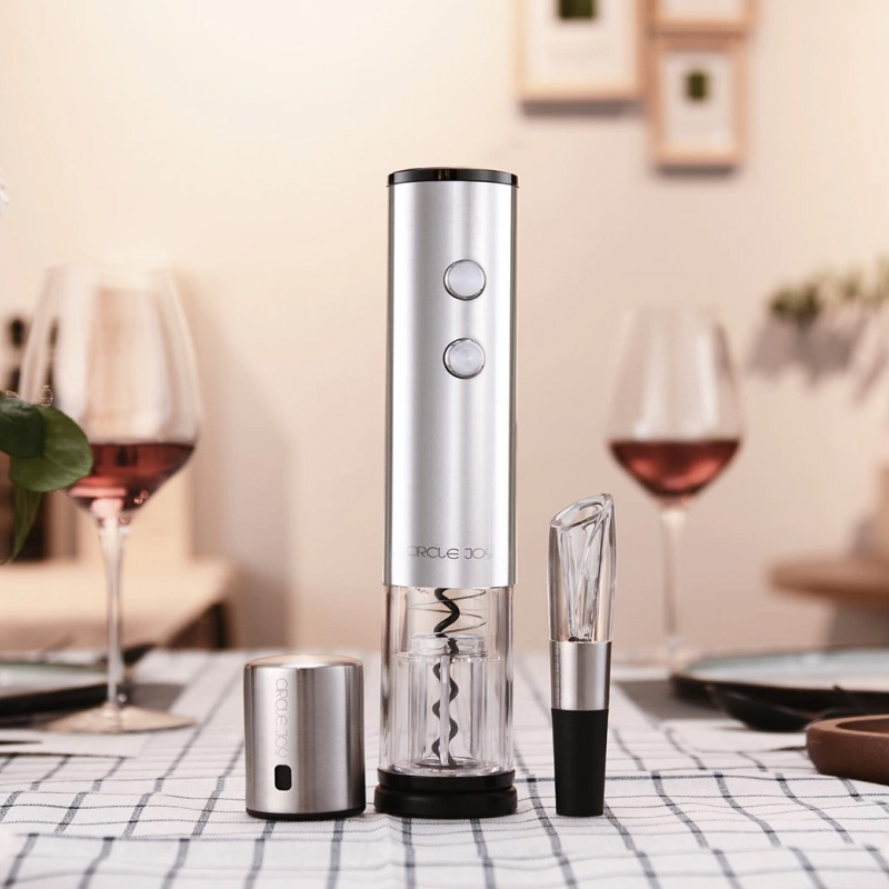 Открыть бутылку вина становится не задачей, а настоящим удовольствием. С помощью специального ножа можно легко вскрыть пластиковую упаковку, электрический штопор всего за несколько секунд извлечет пробку из бутылки, аэратор позволит не пролить ни капли вина и насытить его кислородом, а стопор позволит растянуть удовольствие на несколько вечеров.