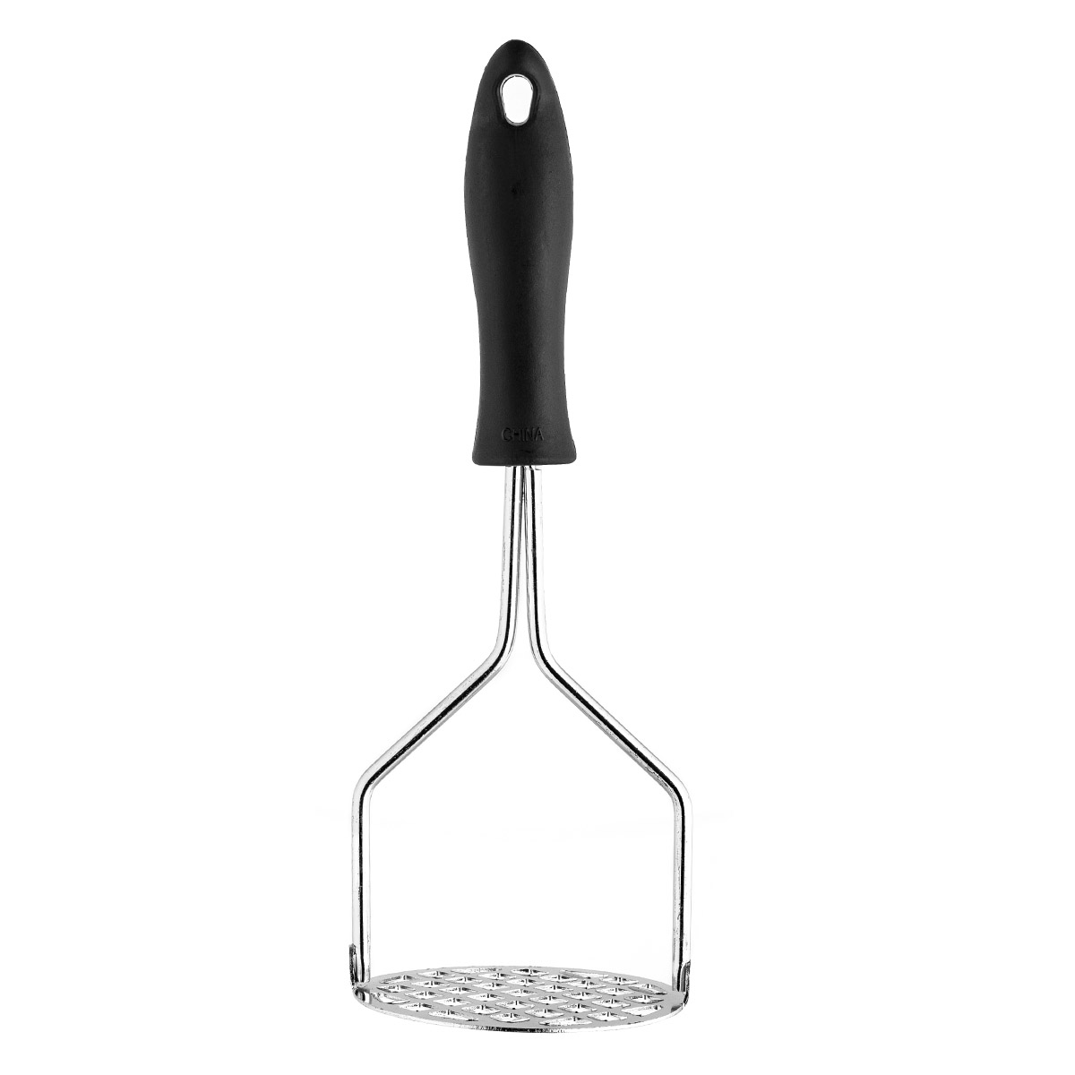Качественный и недорогой инструмент с удобной пластиковой ручкой. Картофельный пресс выполнен из прочной хромированной стали, которая не подвергается коррозии. Надежный проволочный упор обеспечивает передачу давления, не деформируя инструмент. Ручка с отверстием для подвешивания.