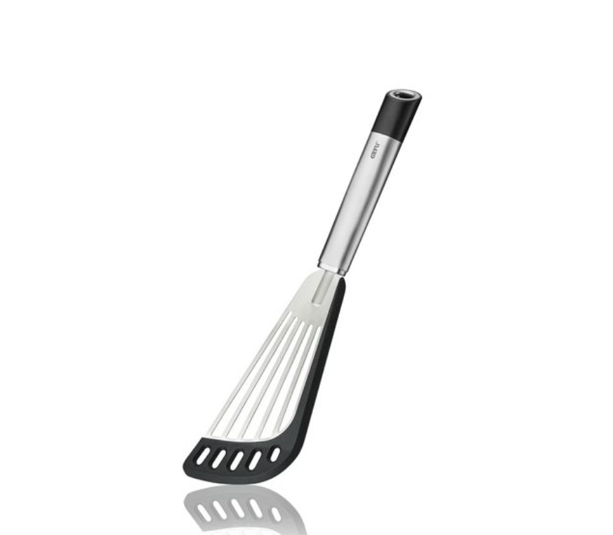 ЛОПАТКА ДЛЯ ПЕРЕВОРАЧИВАНИЯ С СИЛИКОНОВЫМ КАНТОМ GEFU ПРАЙМЛАЙН (модель 29202) Гибкая плоская лопатка легко переворачивает приготовленную пищу со сковородок или подносов, не царапая поверхность: идеально подходит для посуды с антипригарным покрытием.