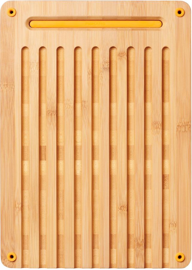 Набор разделочных досок Fiskars Functional Form из трех частей: разделочная доска для хлеб с бороздками для крошек, плоская доска для разделки и сменная пластиковая накладка. Силиконовые ножки обеспечивают стабильность и предотвращают раздвижение по столешнице.