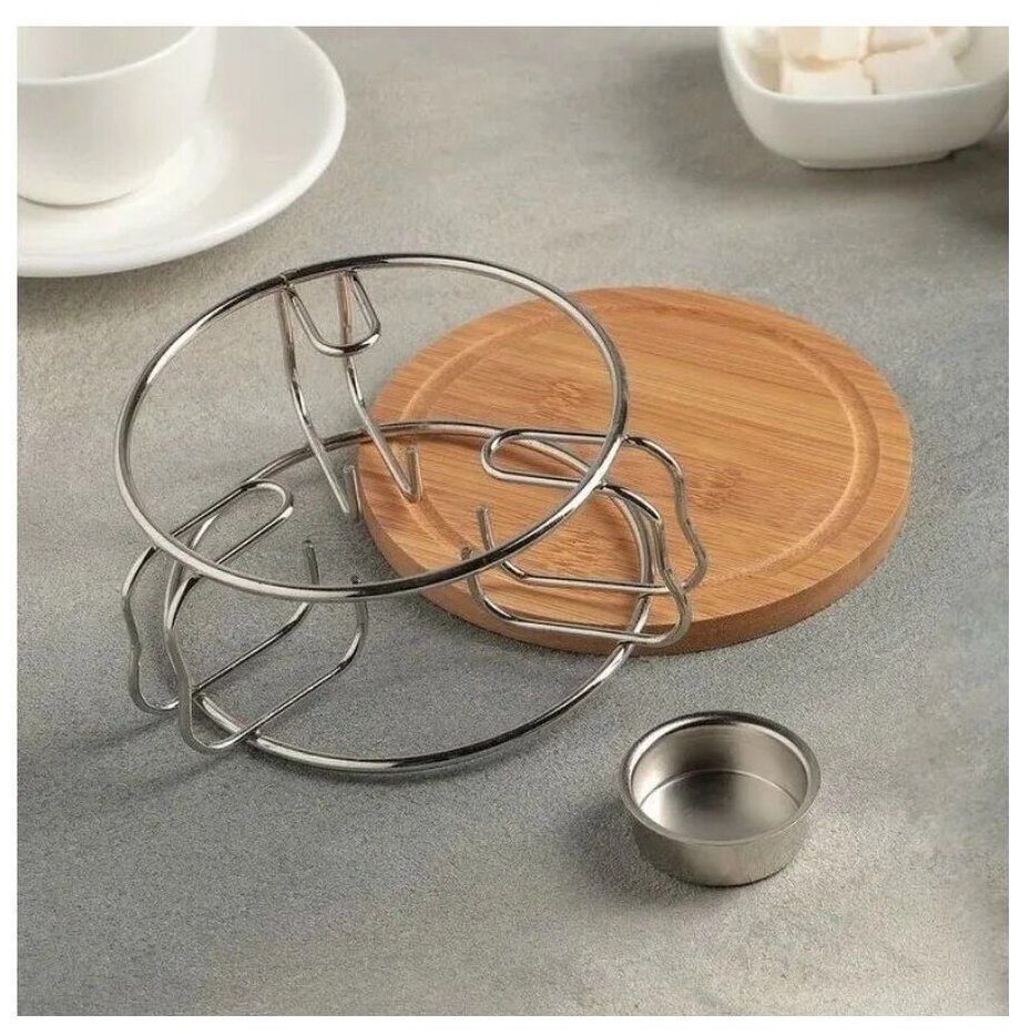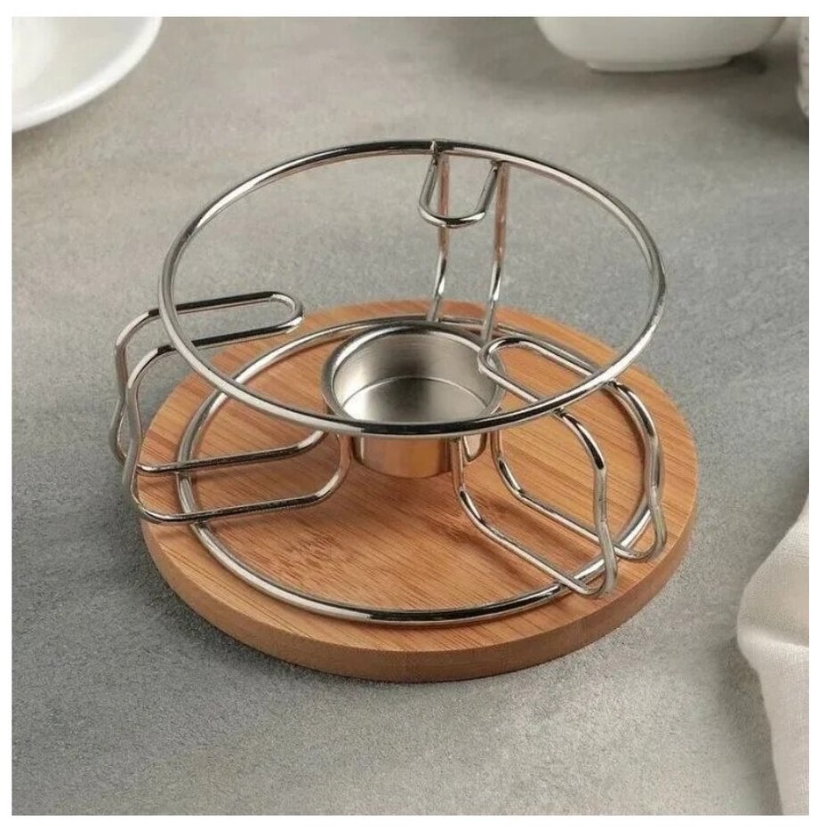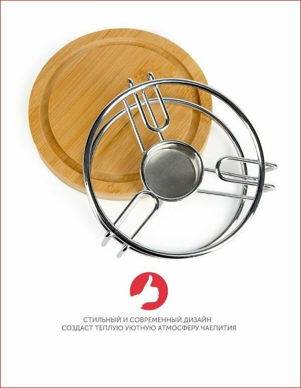 Стильная подставка Zeidan Z-11030 для подогрева блюд из высококачественной нержавеющей стали и бамбука под греющую свечу.