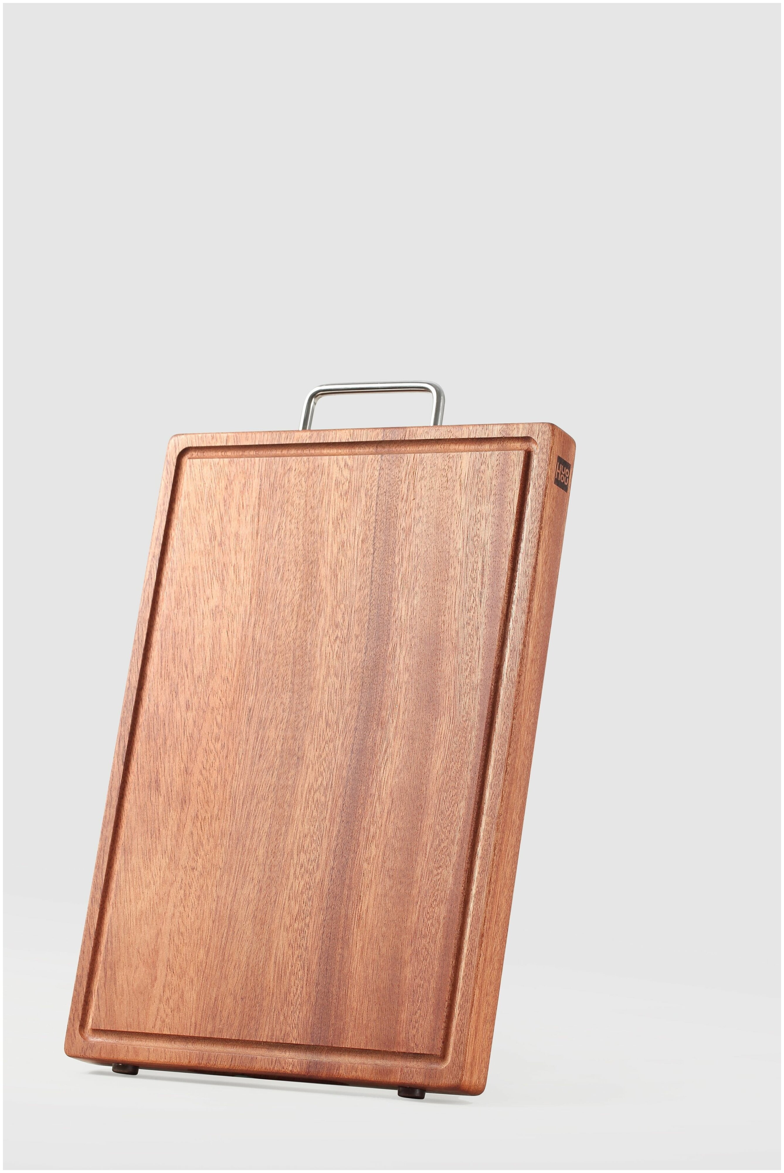 HUOHOU представляет деревянную разделочную доску HU0251 Выбранный материал (древесина сапелли) идеально подходит для разделочной доски, он прочный и надежный, сделан из цельного куска дерева. Обе стороны доски годятся для использования, с одной из сторон есть канавка. Для долговечности доска покрыта органическим защитным маслом. Имеется прочная стальная ручка, при помощи которой доску удобно фиксировать. Доска HU0251 станет незаменимым помощником на кухне.