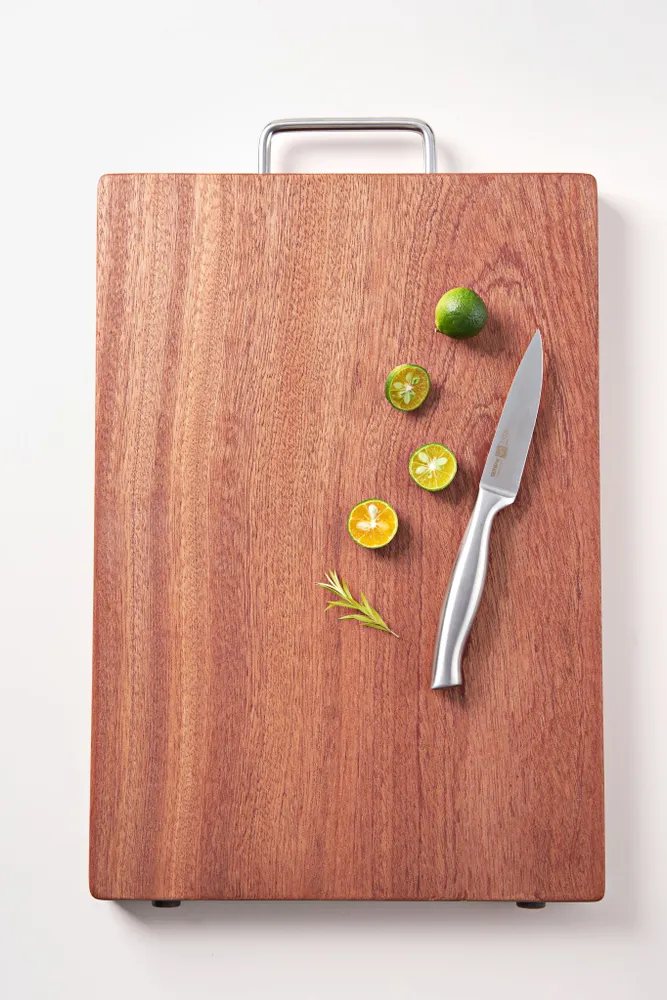 Представитель семейства Мелиевые также отличается высокой твердостью и устойчивостью к воздействию влаги. Кроме того, кухонная доска выполнена из цельного куска дерева, поэтому она долгое время будет сохранять свою форму.