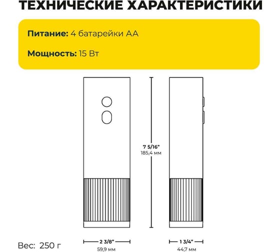 4 батарейки типа АА позволяют открыть около 170 бутылок.
