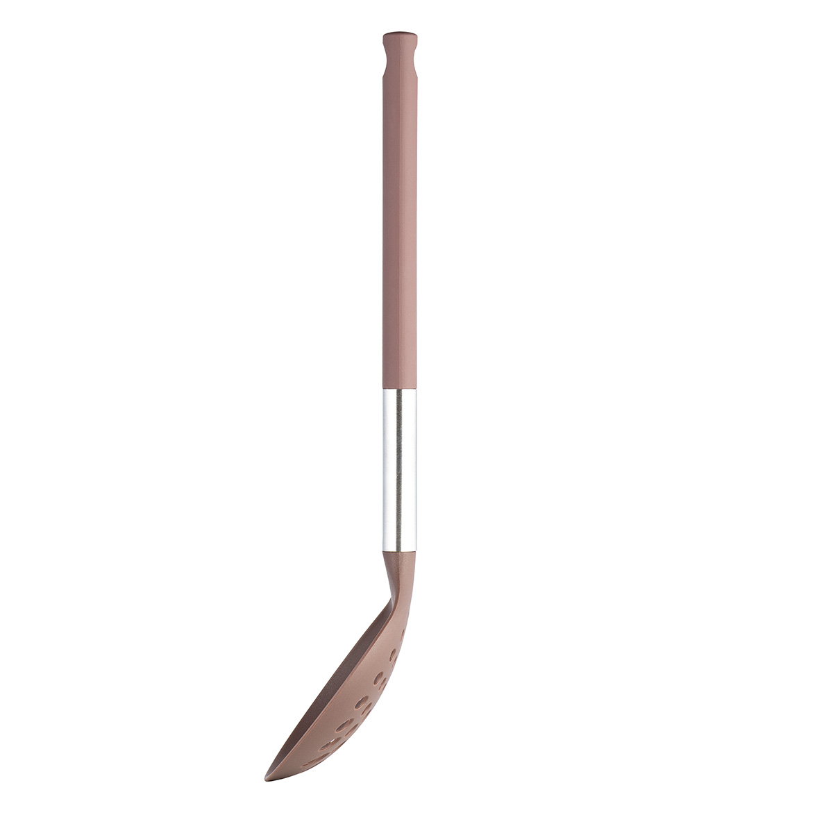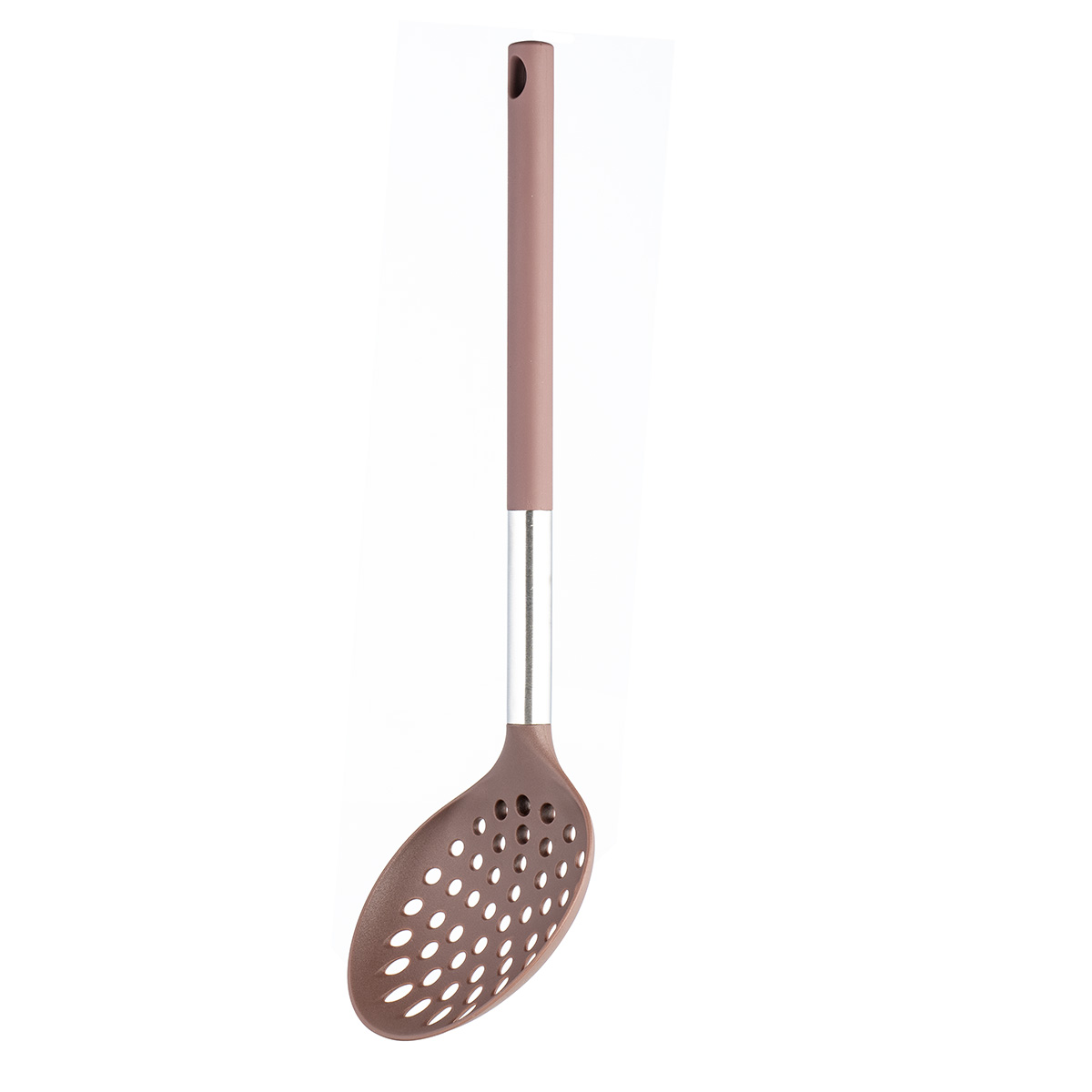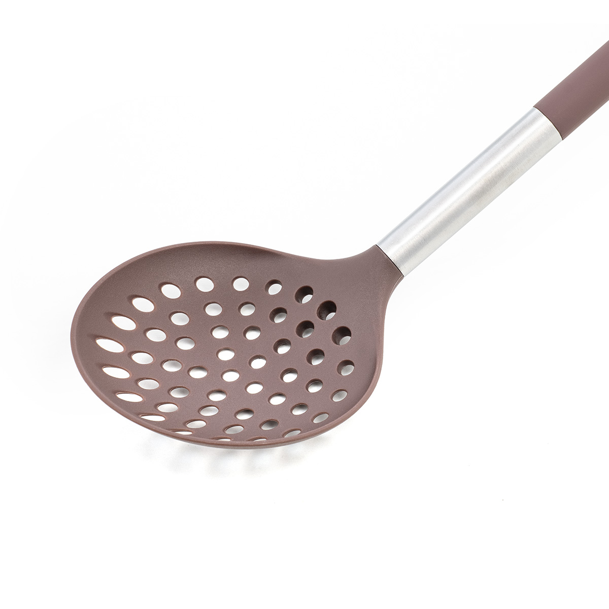 Кухонные аксессуары давно стали не только инструментом, но и предметом интерьера. Серия выполнена в шоколадно-кофейном цвете. Рукоятка с нежным TPR-покрытием. Гигиеничность используемого нейлона соответствует американским стандартам FDA. Переходной патрубок из нержавеющей стали 18/0. Все части изделия тщательно подогнаны и закреплены. Имеется отверстие для подвешивания.