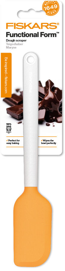 Подходит для работы с тестом, кремами, соусами, а также можно использовать в качестве лопатки для перемешивания. Благодаря ассиметричной форме и гибким силиконовым краям можно без труда удалить все остатки теста/крема из миски. Можно использовать с посудой с антипригарным покрытием.