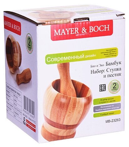Ступка с пестиком MAYER&BOCH изготовлена из бамбука. Ступка станет незаменимой вещью для приготовления свежемолотых специй и приправ, измельчения трав. Свежемолотые специи имеют более насыщенный аромат, поэтому с такой ступкой ваши блюда всегда будут вкусными и ароматными. В набор входит ступка с пестиком. Ступку легко и просто мыть. Ступка 2 пр МВ.