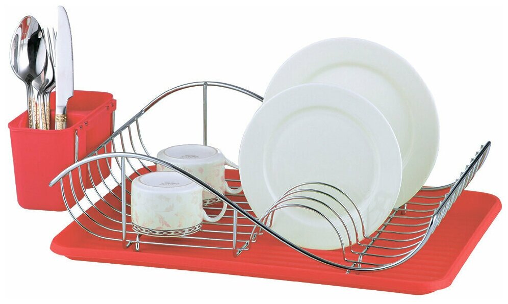 Сушилка для посуды, материал – хромированная сталь, поддон из полипропилена, подставка для столовых приборов, размер - 49x32x13 см, подарочная упаковка с пластиковой ручкой.