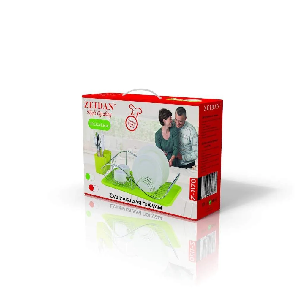 Сушилка для посуды, материал – хромированная сталь, поддон из полипропилена, подставка для столовых приборов, размер - 49x32x13 см, подарочная упаковка с пластиковой ручкой.