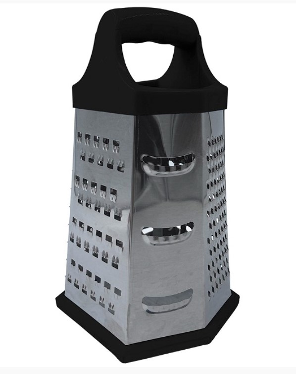 Тёрка многофункциональная 6 в 1 (20х13.5х13.5 см), корпус из высококачественной нержавеющей стали, ручка из пластика, нескользящая основа.