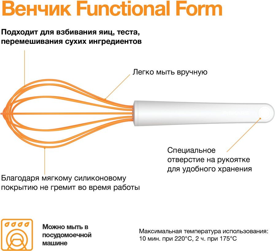 Венчик с силиконовым покрытием. Подходит для взбивания яиц, теста, перемешивания сухих ингредиентов