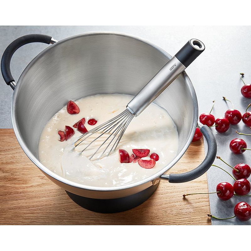 Прочные прутья венчика легко взбивают сливки, яичный белок, пудинги, соусы и прочие продукты в считанные минуты.