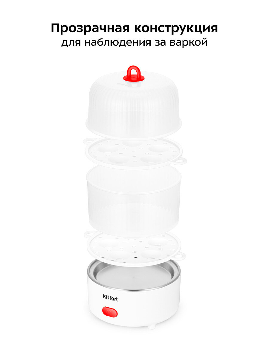 Яйцеварка КТ-6960 предназначена для варки яиц на пару. Варёные яйца — неотъемлемый элемент вкусного, полезного, простого завтрака. Иногда не получается аккуратно положить яйца в кастрюлю, и яйца бьются друг о друга. С яйцеваркой эта проблема решена.
