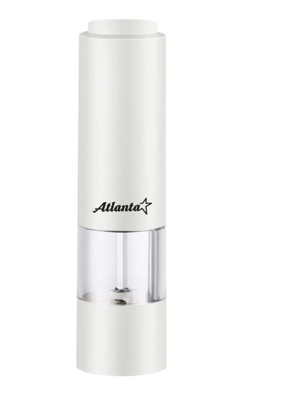 ATH-4616 (white) Мельница электрическая для специй Atlanta станет полезным и стильным аксессуаром на вашей кухне. Буквально за несколько секунд, без каких-либо усилий вы сможете перемолоть перец, крупную соль и другие специи. Благодаря свежим специям каждое блюдо, которое вы готовите, наполнится своим неповторимым, насыщенным вкусом и оттенком. Внутри перцемолки установлен надежный керамический механизм, корпус выполнен из прочного из ABS-пластика. Готовьте с электромельницей Atlanta и удивляйте своими кулинарными шедеврами родных и близких.