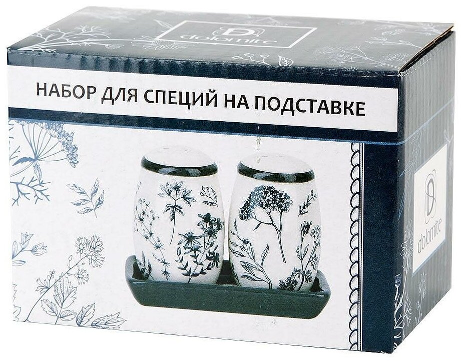 Набор для специй Dolomite Луговые травы солонка, перечница на подставке 12x7 см L2520909 предназначен для хранения специй.