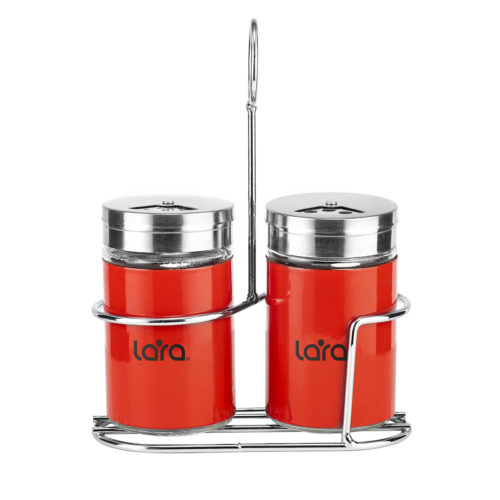 Набор для специй Lara – это практичный аксессуар для ежедневной сервировки стола. Набор изготовлен из высококачественной нержавеющей стали с комбинированным покрытием и обладает такими свойствами, как прочность и долговечность, отсутствие вкуса и запаха, нетокосичность. Набор выполнен в форме небольших баночек с крышками, объем баночки 100 мл. Через откручивающуюся крышку удобно засыпать специи, а благодаря прозрачному окошку можно контролировать их уровень. Для удобного хранения в комплект входит подставка из нержавеющей стали. Набор для специй можно мыть в посудомоечной машине. После мытья необходимо протереть и дать высохнуть.