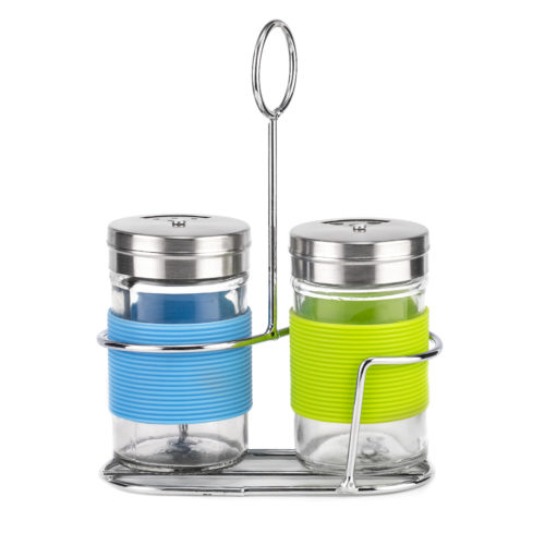 Набор для специй LARA выполнен в ярком современном дизайне. Это практичный аксессуар для ежедневной сервировки стола. В комплект входит устойчивая проволочная подставка из экологичной высококачественной нержавеющей стали с матовой полировкой. Конструкция с удобным кронштейном для переноски и двумя отделениями для хранения емкостей для специй. Солонка и перечница выполнены из прозрачного стекла с яркими накладками из мягкого нейлона с эффектом Soft-touch. Удобный контроль уровня наполнения. Съемные крышки с возможностью прикрыть отверстия для специй, чтобы они не выдыхались и не отсыревали. Можно мыть в посудомоечной машине.