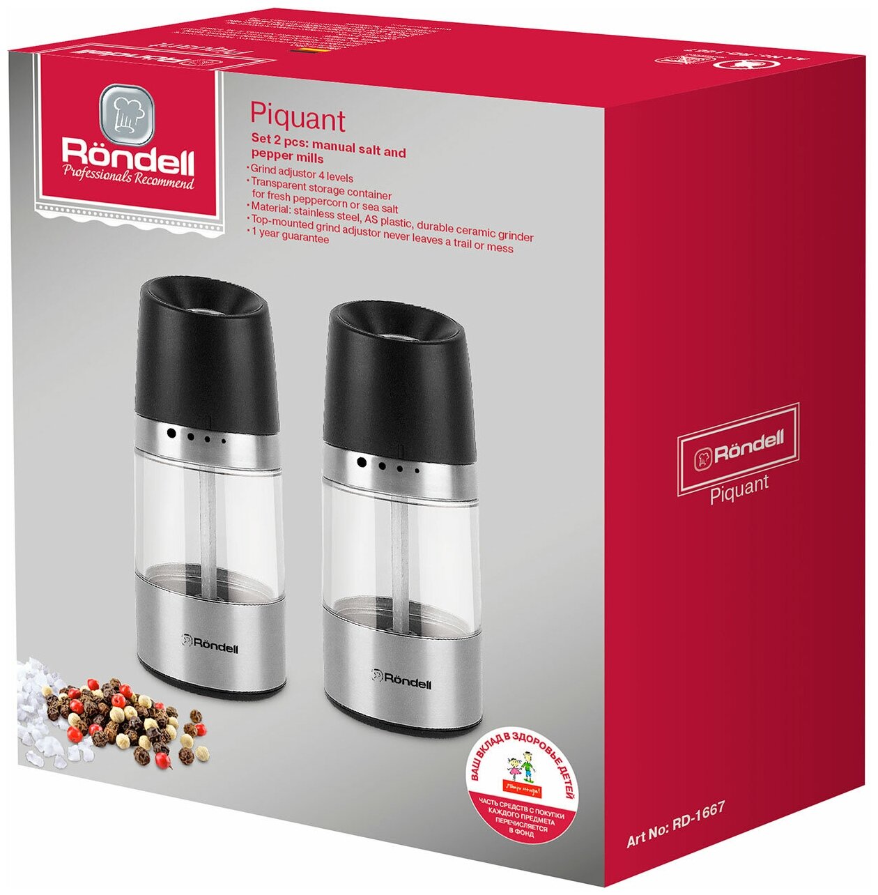 Комфортабельная кухня, красивая посуда, стильные функциональные аксессуары — слагаемые отличного настроения и успеха кулинарного творчества. Именно эти составляющие дарят вдохновение хозяйке, и она воплощает в жизнь самые затейливые гастрономические идеи. Добавьте в свою кухонную коллекцию еще одну деталь, которая сделает ежедневный процесс приготовления пищи более приятным и легким! Речь идет о механической мельнице Piquant, изготовленной из нержавеющей стали и высококачественного пластика. Благодаря классическому дизайну и строгому цветовому решению (гармоничному сочетанию серебристого с черным), устройство идеально впишется в интерьер любой кухни. Мельница с довольно вместительным контейнером имеет четыре регулируемых степени помола, способных измельчить соль или перец горошком (около 67 г). Что особенно приятно, жернова расположены сверху, а значит, после использования устройства вы не обнаружите остатки специй на столе.