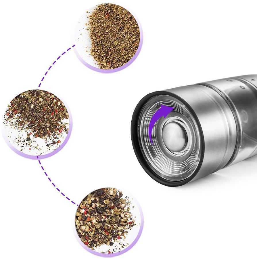 Степень помола легко регулируется винтом. Регулируйте степень измельчения приправы для каждого блюда индивидуально.