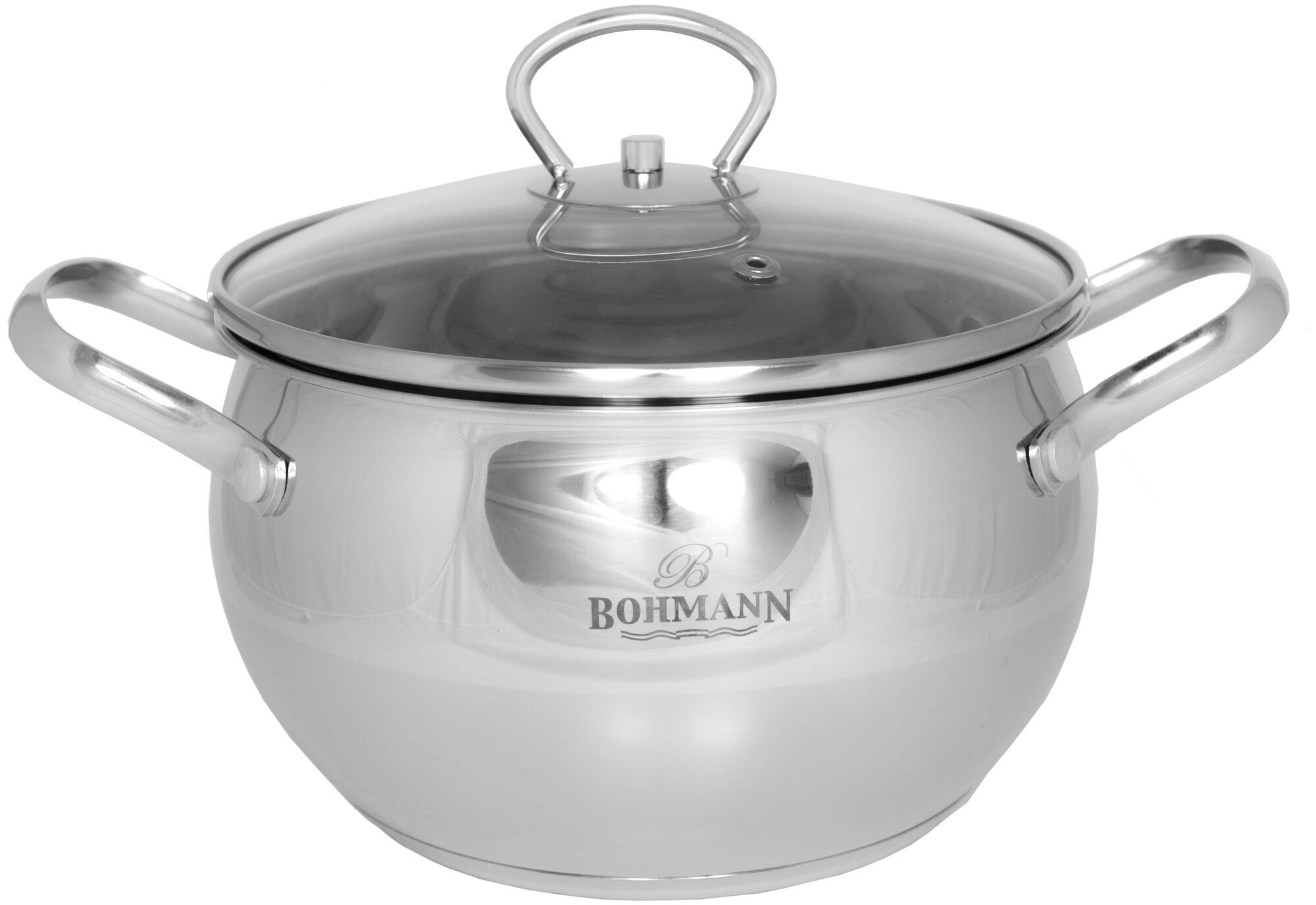 Состав - стекло, нержавеющая сталь Набор кастрюль Bohmann (Бохманн) BH-0602 подходит для электрической, стеклокерамической, газовой, галогеновой, индукционной плиты.