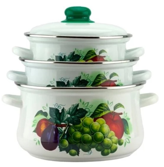 Комплектация кастрюли: 2 л, 3 л, 4 л; 3 крышки