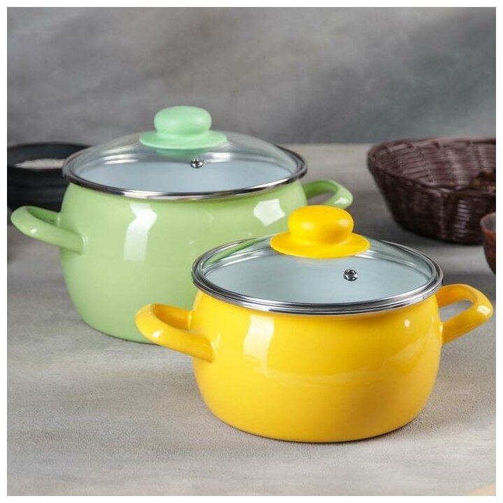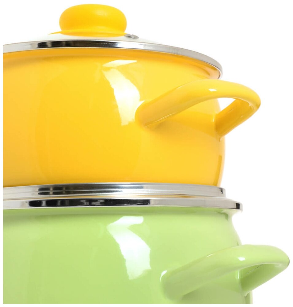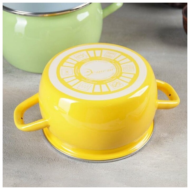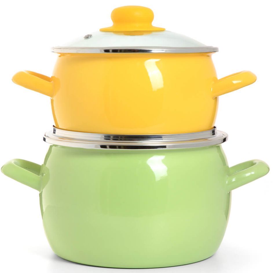 Набор посуды Эстет изготовлен из высококачественного стального проката и покрыт стеклокерамической эмалью. Внутри и снаружи - трехслойное глянцевое эмалированное покрытие.